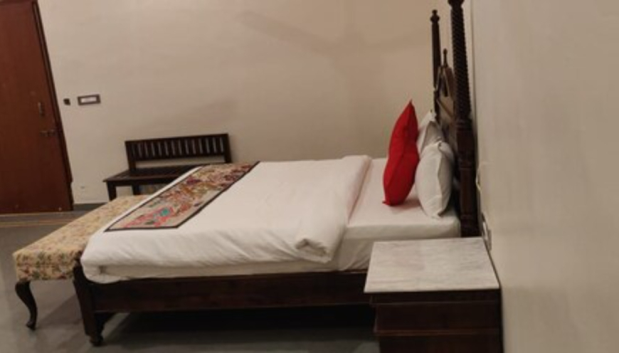 A blend of royal Rajasthani decor and modern minimalism.